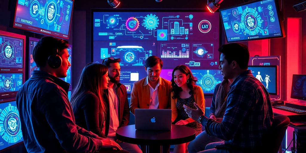 Diverse tech team working on AI entertainment innovations.