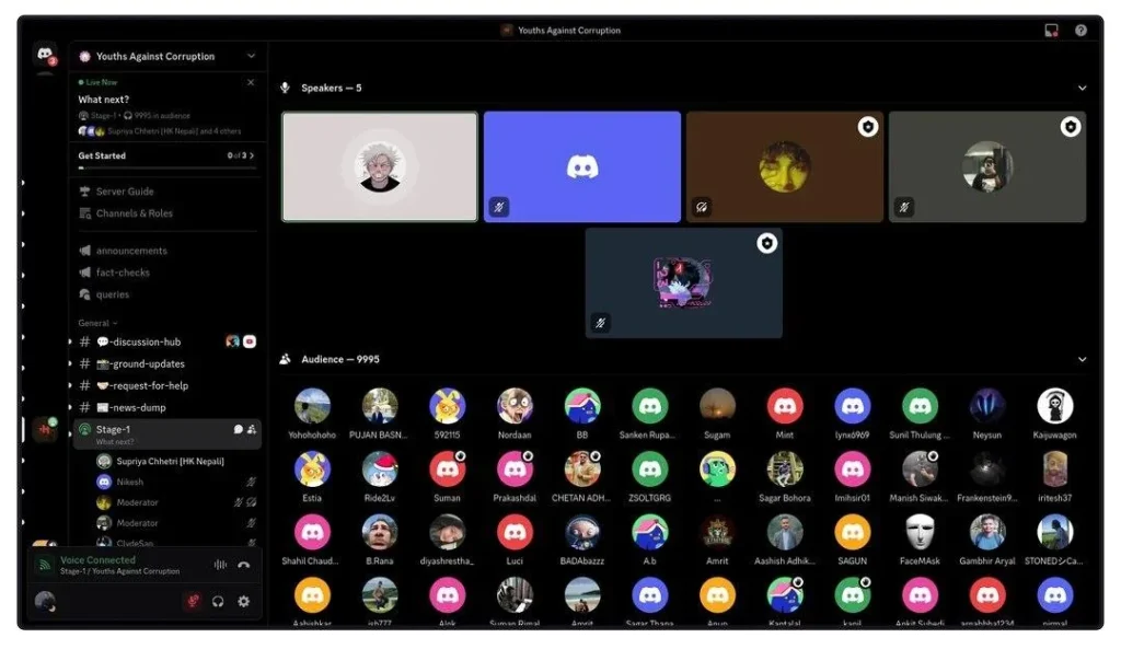 Amid internet bans and social media crackdowns, thousands of young Nepalis found a digital refuge in Discord, an app more often associated with gaming than governance. A server dubbed “Youth Against Corruption,” rapidly swelled to over 130,000 members, becoming a virtual parliament for frustrated citizens.