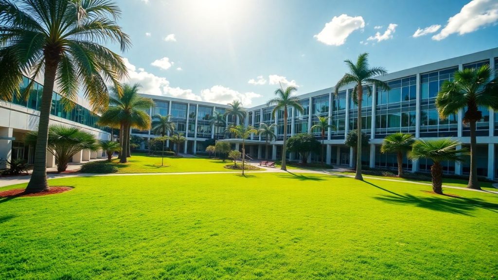 Florida Institute of Technology campus with palm trees and buildings.