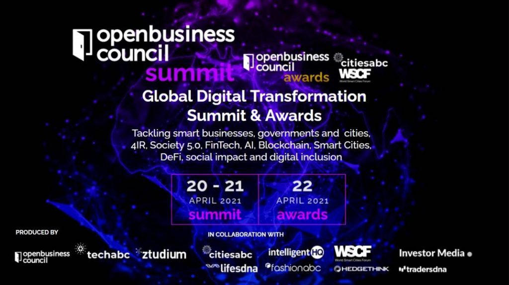 Exclusive openbusinesscouncil summit LIVE event with over 120+ speakers, including former Nasa Astronaut Scott Parazynski, Bollywood Actor Javed Jaffrey and government representatives. In this 3-days digital event and throughout 20+ panels, the experts will discuss the challenges and opportunities of digital transformation and technology for businesses and governments, Smart business– smart SMEs Day – Society & Business – 4IR Frontier tech and society 5.0, Digital Inclusion, AI, big data, IOT, Social Impact Wellness – Healthtech, Digital Literacy, Cyber Security, Social Media, Data.