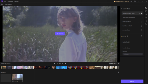 Step 2: After going into the timeline of the HitPaw VikPea, you’re required to select the favorite AI model. To save your time while applying the majestic upscaling techniques, you can opt for the General Restoration Model, as it will make the videos look wonderful and admirable.