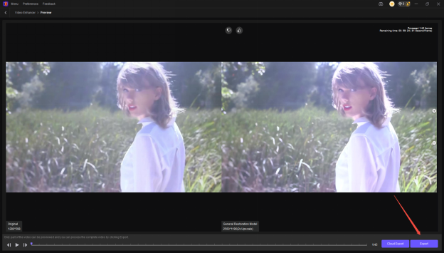 Step 3: Once you’re done choosing the desired AI model, you’ll need to preview the videos, as doing so helps you make some changes if you aren’t happy with the results of the video. Then, you can click on the Export button to download the video into the computer.