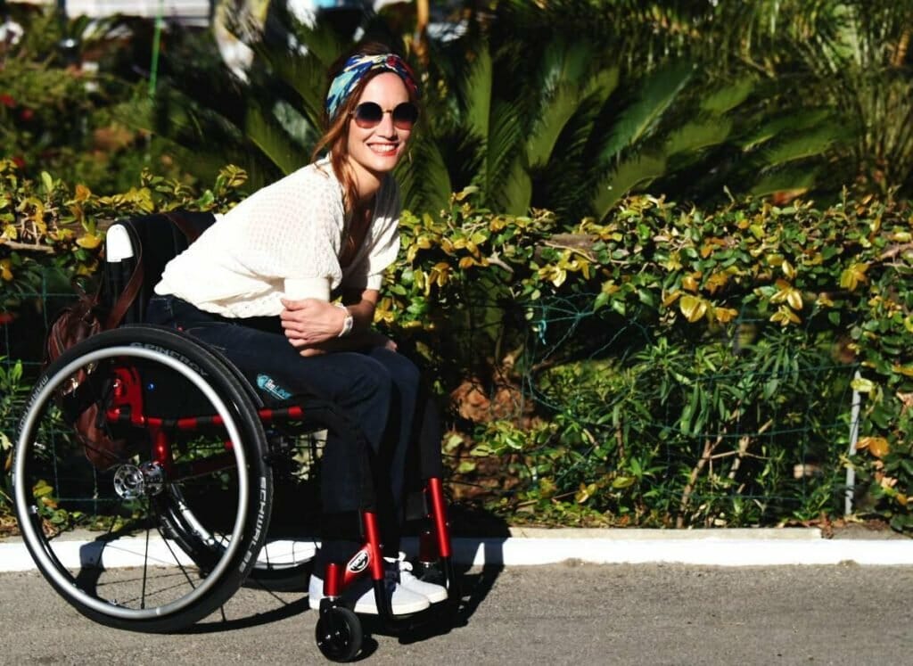 Samanta then decided to join forces with innovative designers and to develop her own brand, tailored to her own needs, such as more practical zippers, waist-high trousers, cropped jackets with vegan leather details on the sleeves to prevent to dirt them on the wheels of the chair, sustainable jewellery inspired in the force of transformation of nature, body creams specially developed to help activate the circulation of the legs, among other novelties.