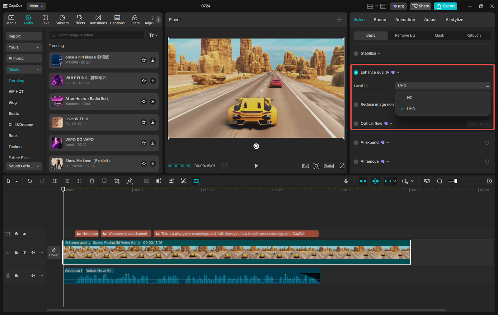 AI Video Upscaler in CapCut assists in that. It removes a hazy video, enhances the lights, and makes the details crisp. I applied it to an ancient drift video. It gave me an incentive to keep my head high and share something, even something that I was too embarrassed to share.